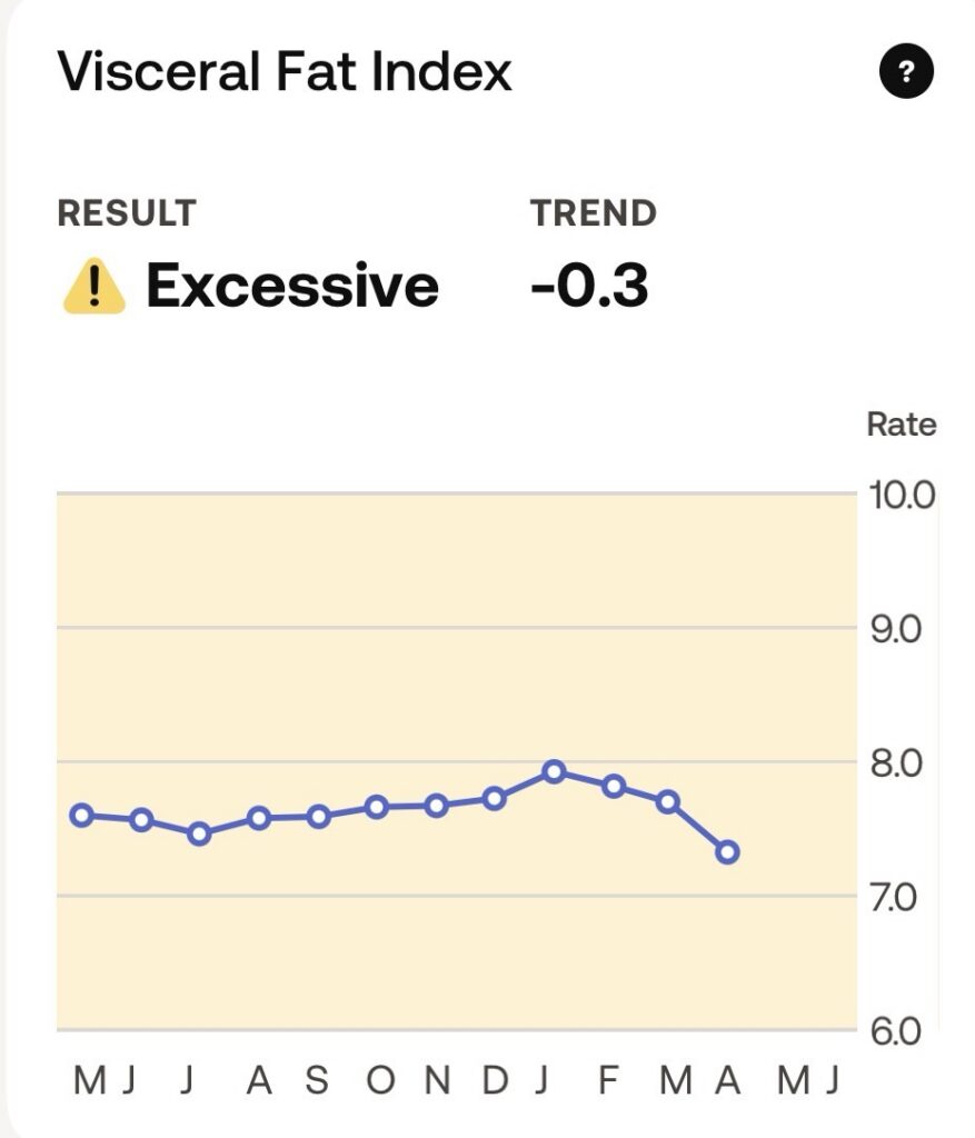 Visceral fat is one of the biggest issues I’m looking to address. Monitoring this was one of my motivations for getting a fancy Withings scale.
